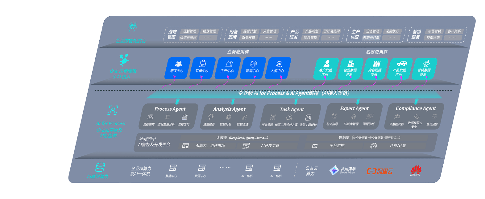 梦之城问学智车解决方案是一套基于AI技术的汽车行业智能化系统,,覆盖从底层算力到顶层AI应用的全栈方案。。方案由算力层、、模型层和应用层组成:算力层,,方案支持多种一体机配置,,具备云端灵活部署、、、、多云适配以及动态优化计算资源的能力;模型层,,,梦之城问学平台版提供了企业级AI应用一站式构建与管理平台,,,,支持基于后训练强化技术的汽车企业专属模型的训练、、、评测和运营;应用层,,,,梦之城问学DeepSeek版提供包括超级员工、、、、智能招采、、、智能营销、、智能客服、、、、AI for BI等一系列解决方案,,,,可助力汽车行业实现数字化转型,,,让管理更智能、、、响应更敏捷。。。