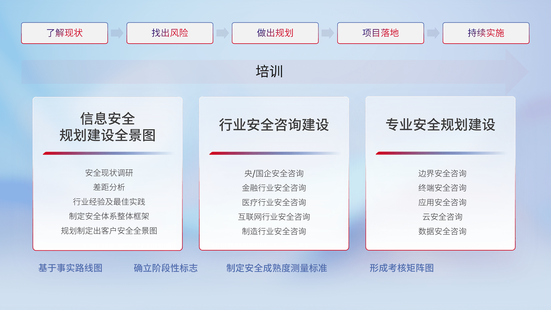 梳理客户信息安全现状调研、、差距分析结果,,,结合行业先进经验及最佳实践,,,,制订客户的信息安全管控体系总结架构,,,最终形成一个完整的客户信息安全规划与建设的全景图。。