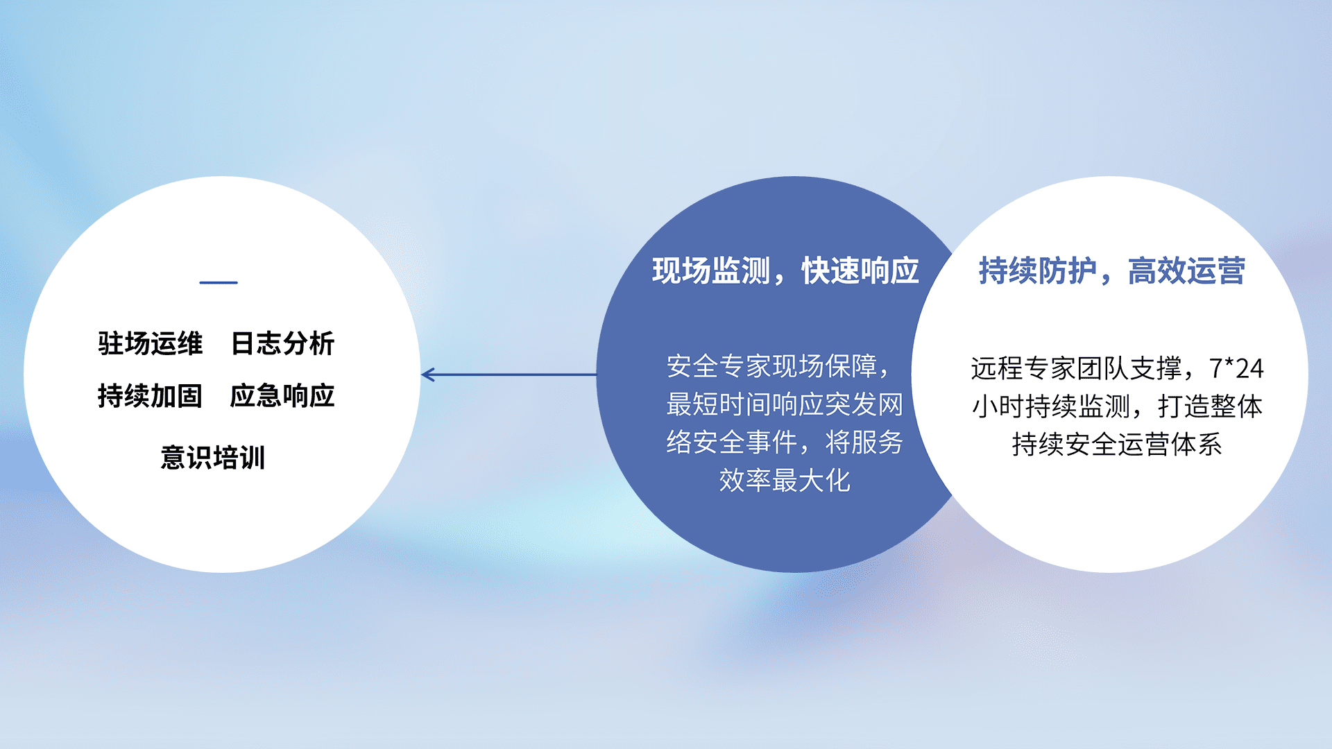 针对客户行业特性,,,,提供专属的一站式安全管理服务,,帮助客户全面感知网络空间威胁,,,通过安全专家的线上、、、、线下防护支持,,实现风险闭环,,,将安全保障常态化,,,为客户打造常态化安全运维运营服务。。